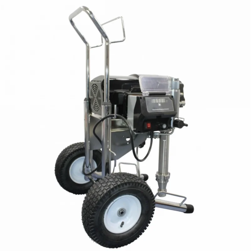 Безвъздушна бутална помпа за боядисване и за нанасяне на бои и шпакловки с отлична производителност (8 л/мин) за вътрешни и външни приложения. Иновативно и надеждно оборудване ; безчетков мотор. С издръжлива и здрава конструкция с колела.